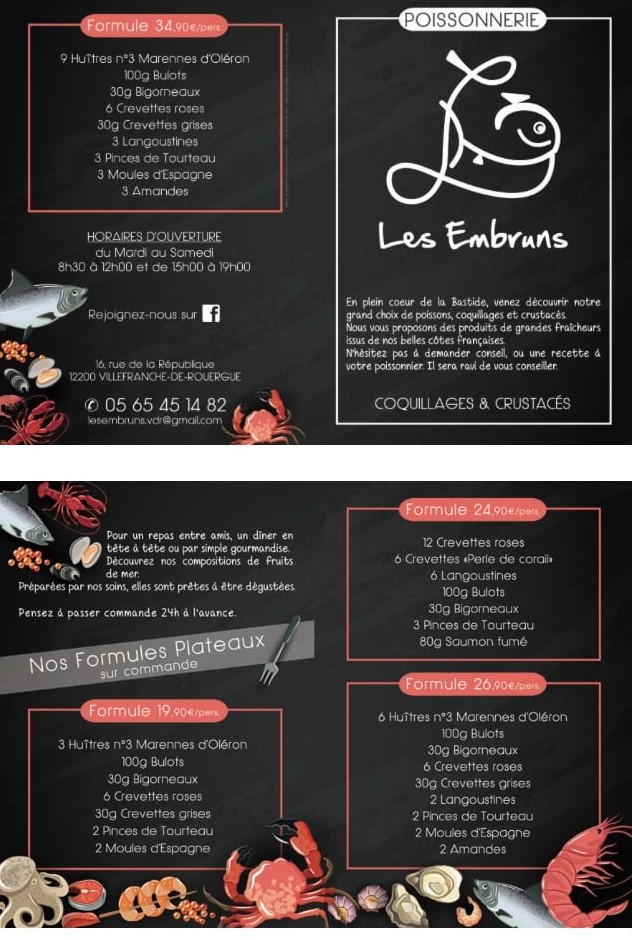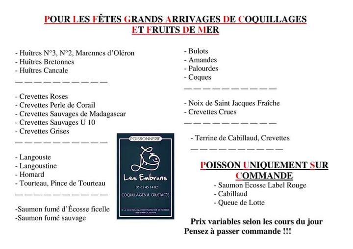 POISSONNERIE LES EMBRUNS : Commande de plateaux de fruits de mer au 05.65.45.14.82 ou directement en magasin. 📫 16 rue de la République.