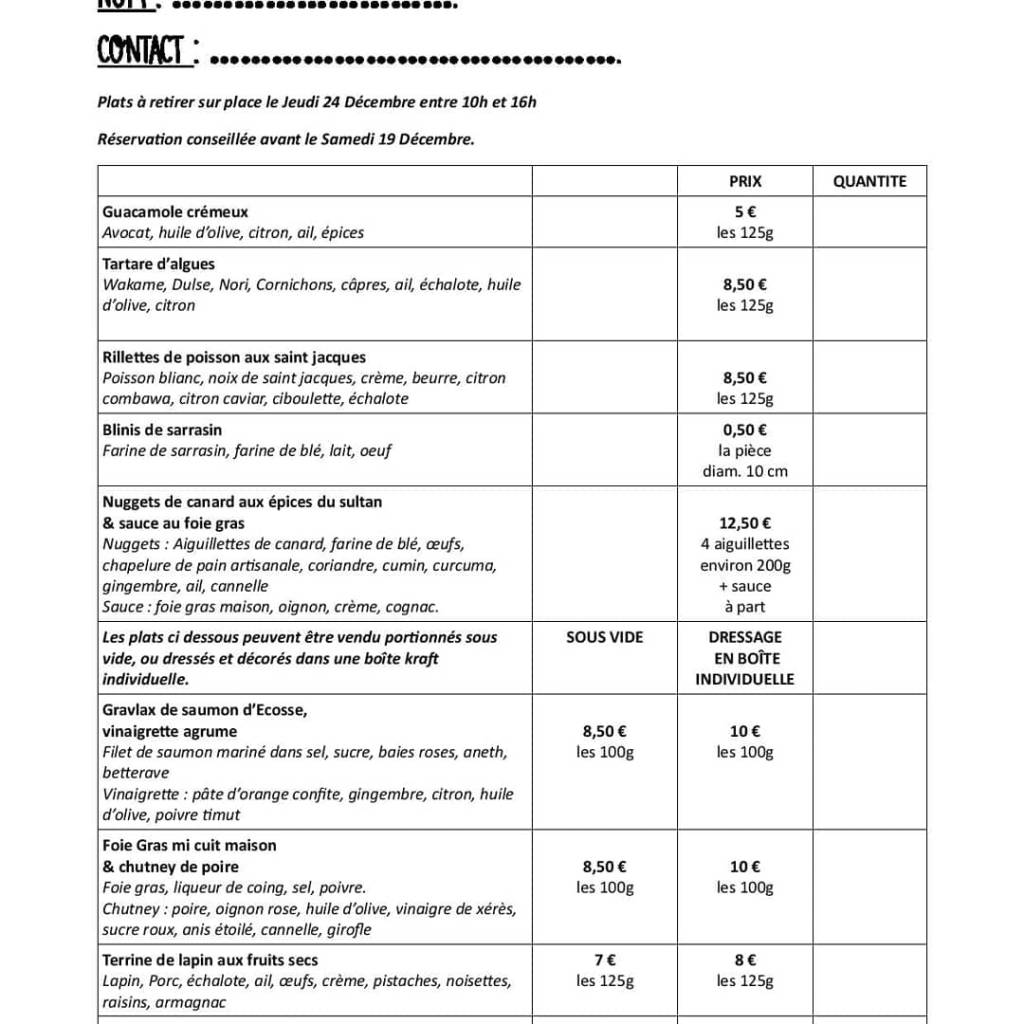 Commandes à retirer à Villefranche-de-Rouergue au niveau du Food Truck à partir du 22 décembre.