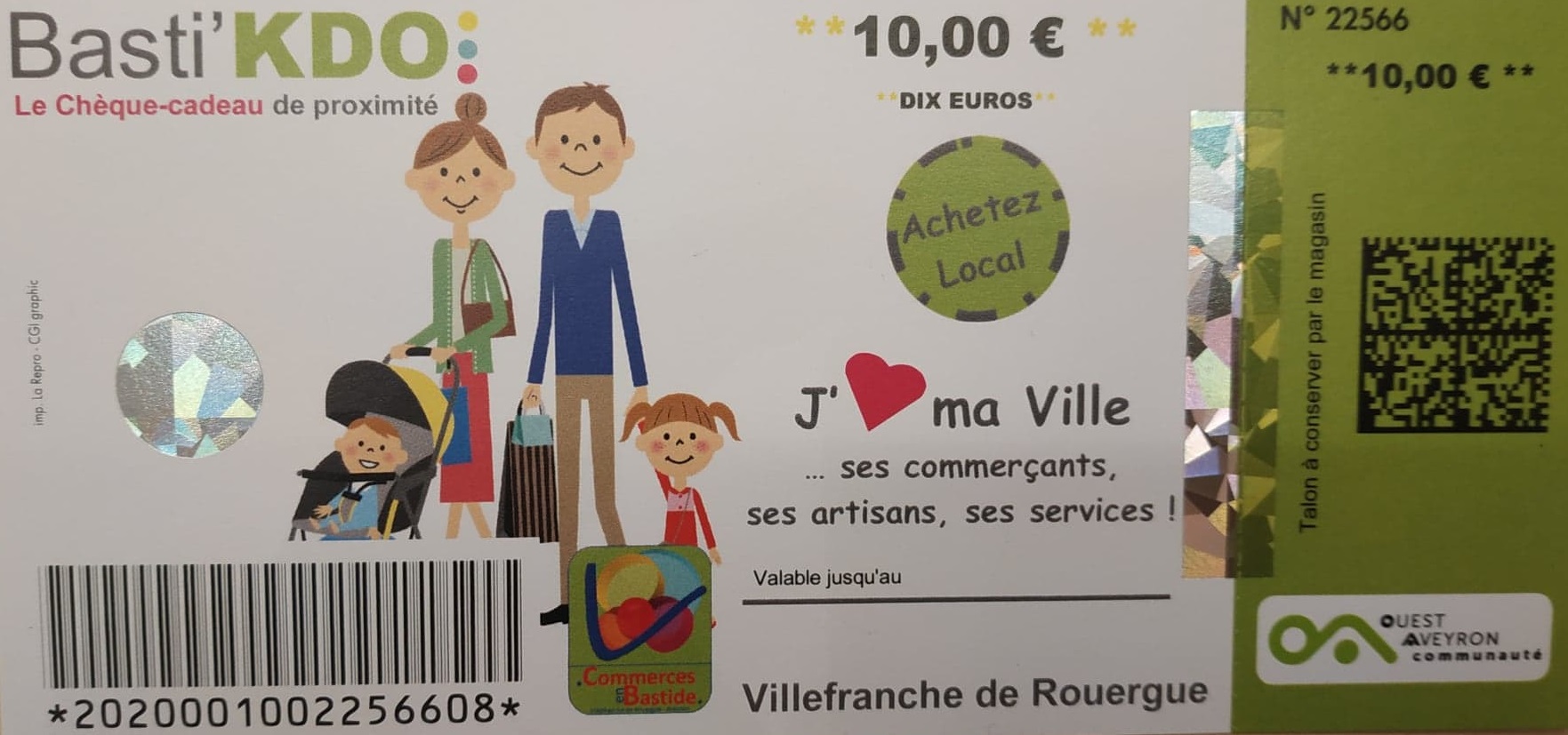 Faites plaisir à vos proches et soutenez le commerce local en achetant des Basti’KDO utilisables et dépensables dans plus de 70 commerces du centre-ville de Villefranche de Rouergue. Ils sont envoyés en courrier recommandé avec accusé de réception. La liste des commerces adhérents est fournie avec votre achat. Des frais d’envoi de 8€ vous seront facturés pour tout achat de Basti’KDO. <img alt= » » border= »0″ src= »https://www.paypalobjects.com/fr_FR/i/scr/pixel.gif » width= »1″ height= »1″>