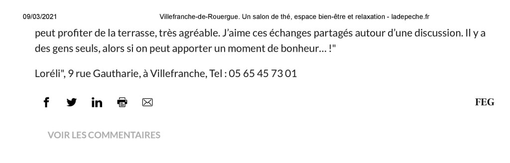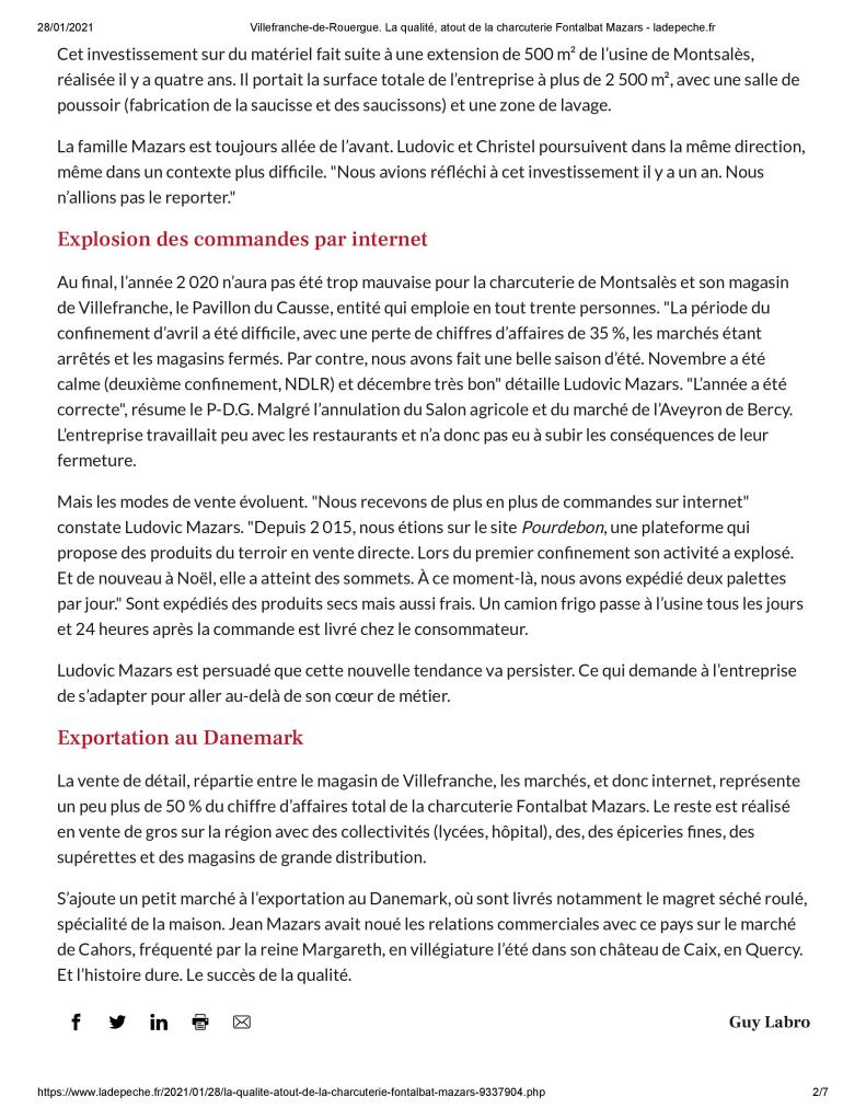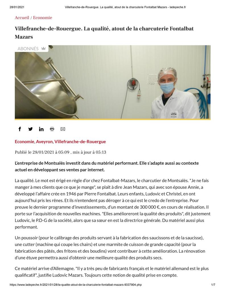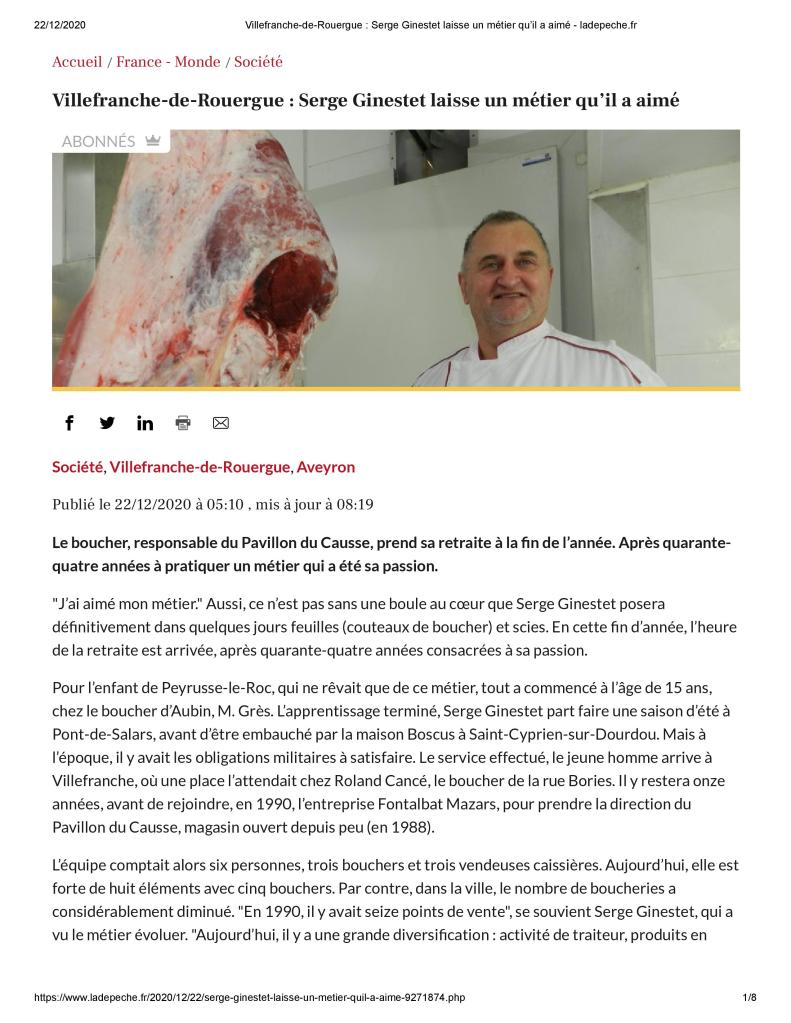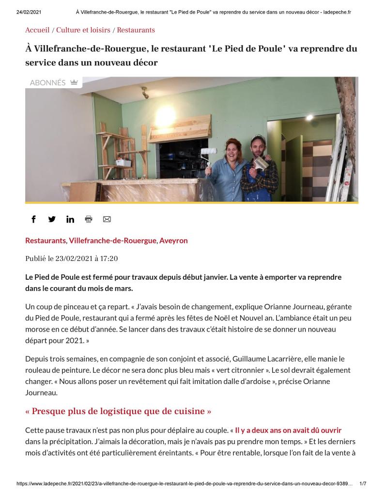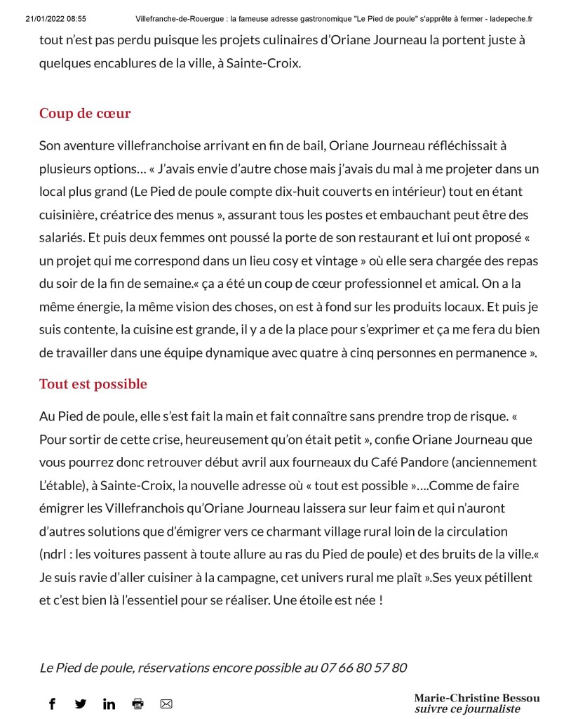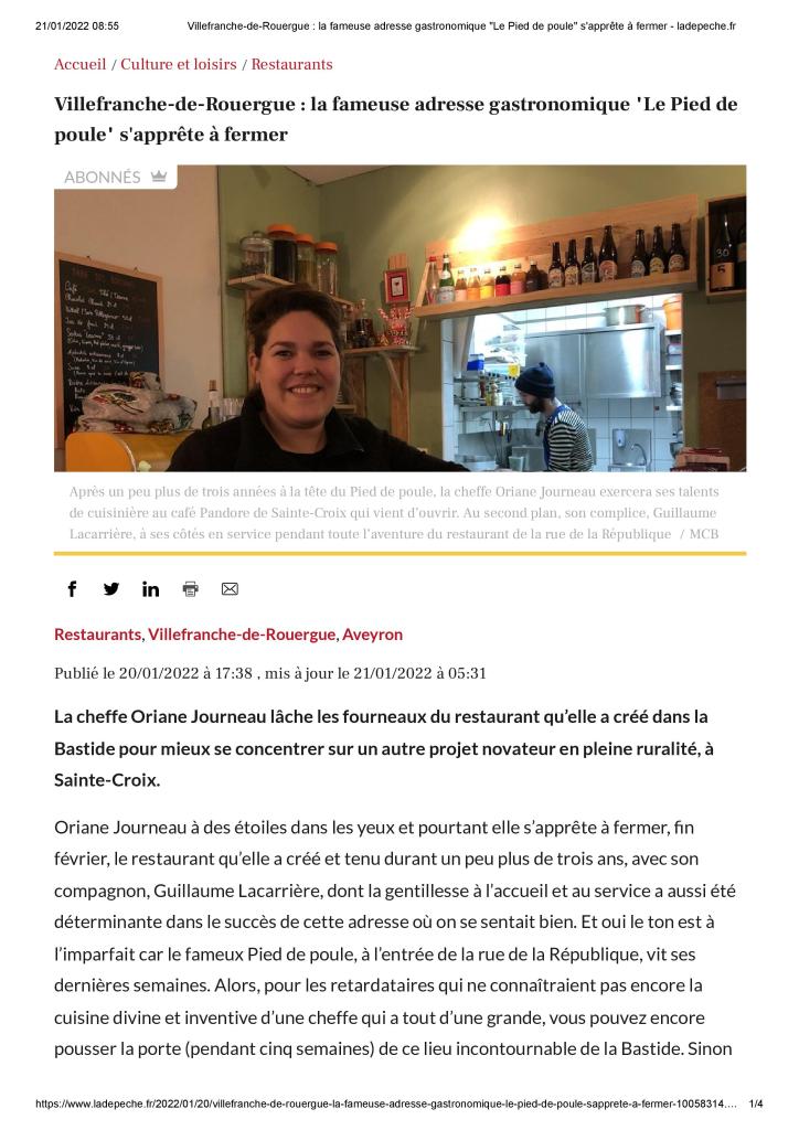 Article paru dans La Dépêche du 20/01/2022 sur le départ de notre adhérent Le Pied de Poule de Villefranche de Rouergue