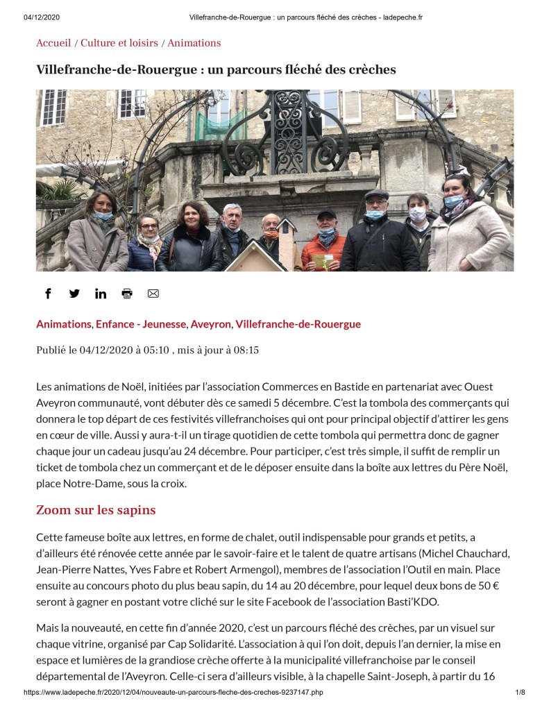 Article paru dans La Dépêche du 02/12 sur le programme de Noël en Bastide