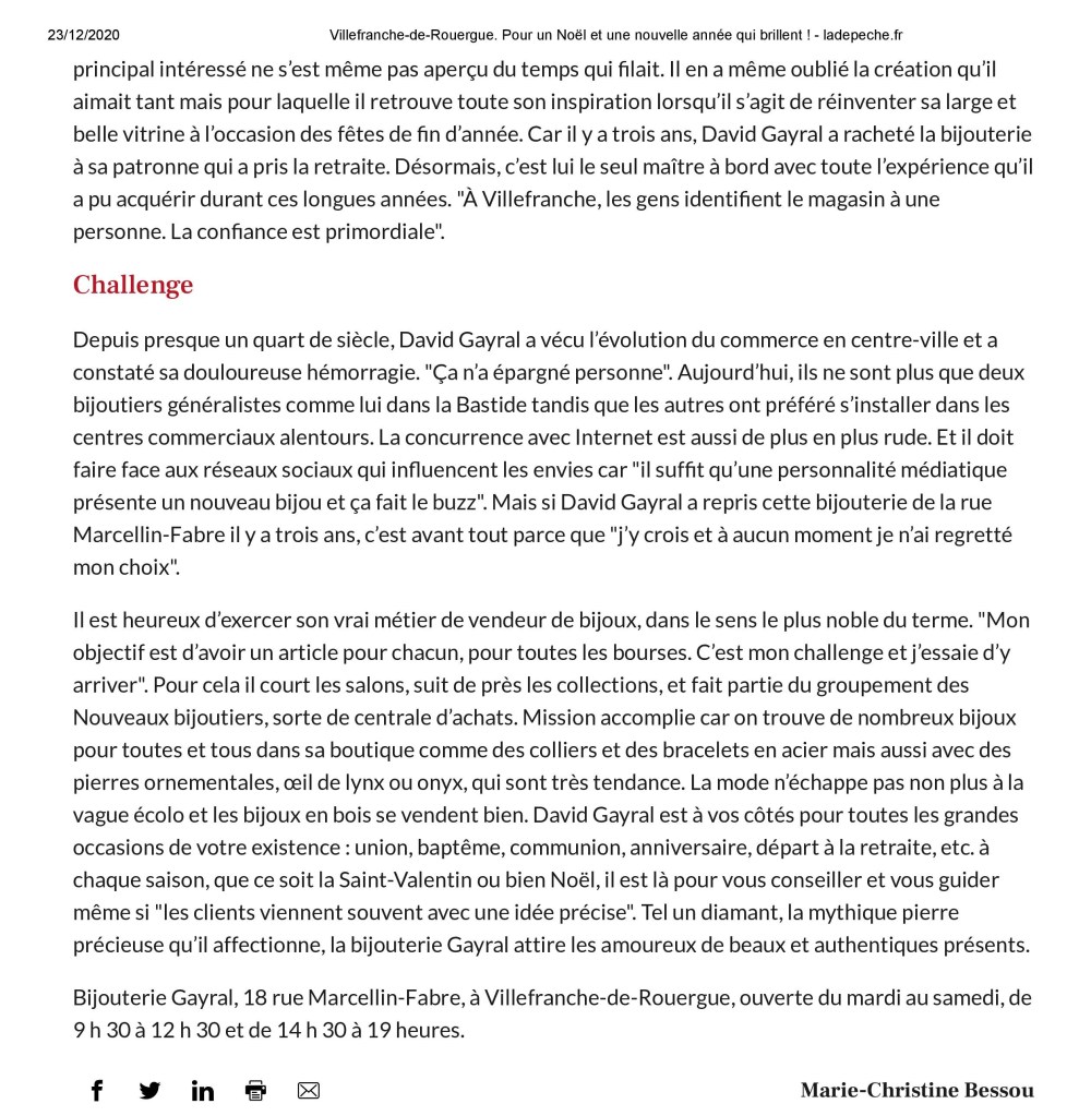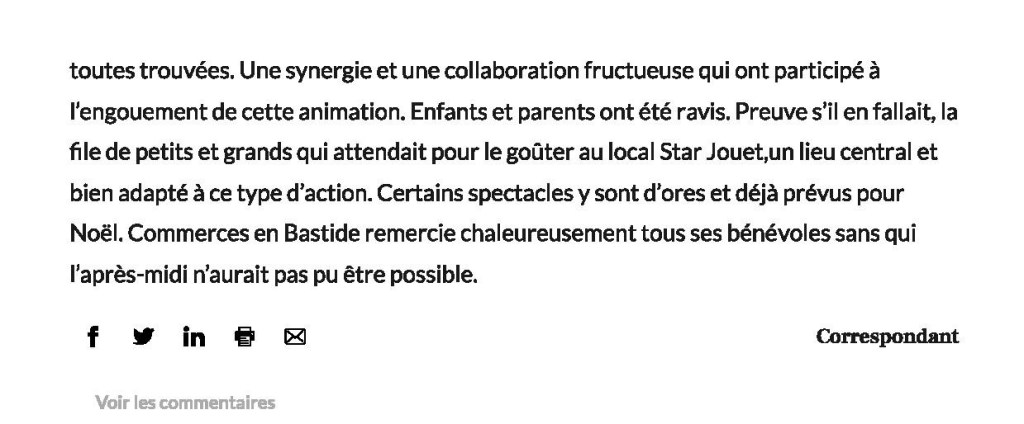 Article de La Dépêche du 29/11/2019 sur l’excellent programme de Noël concocté par l’association Commerces en Bastide.