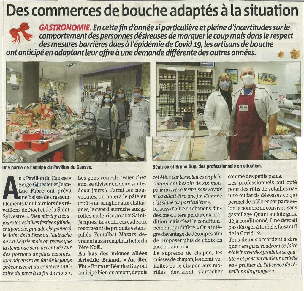 Article de La Dépêche du 18/04/2020 sur l’adaptation de notre boucher adhérent Nicolas Trinquier face à la crise.
