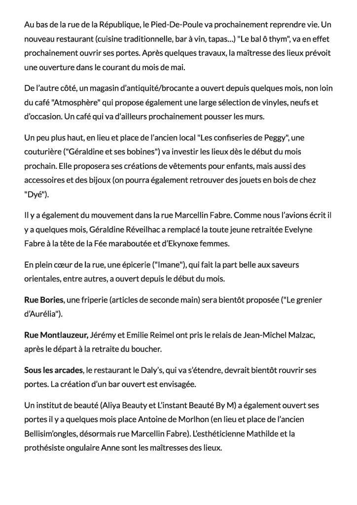 Dossier sur les commerces paru dans La Dépêche du 23/03/2023