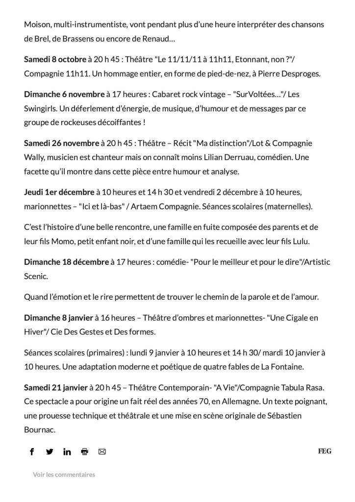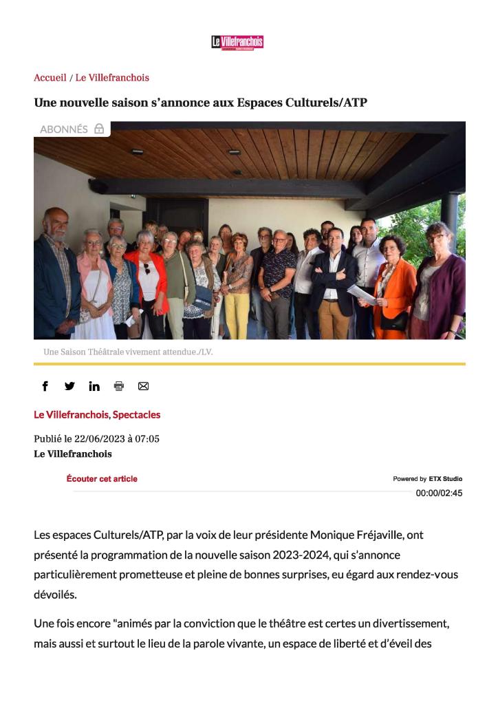Article paru dans Le Villefranchois du 22/06/2023 sur la nouvelle saison aux Espaces Culturels.