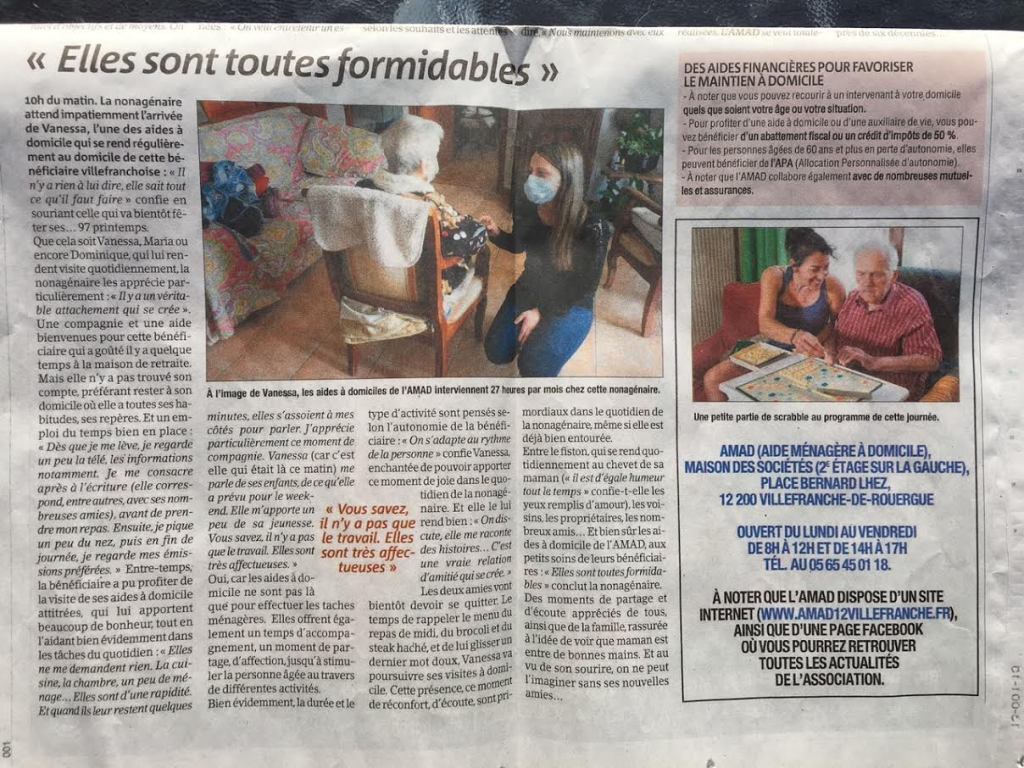 Pleine page dans le Villefranchois du 21/05/2020 sur les adhérents de l’association qui ont pris leurs dispositions pour la réouverture aux publics.