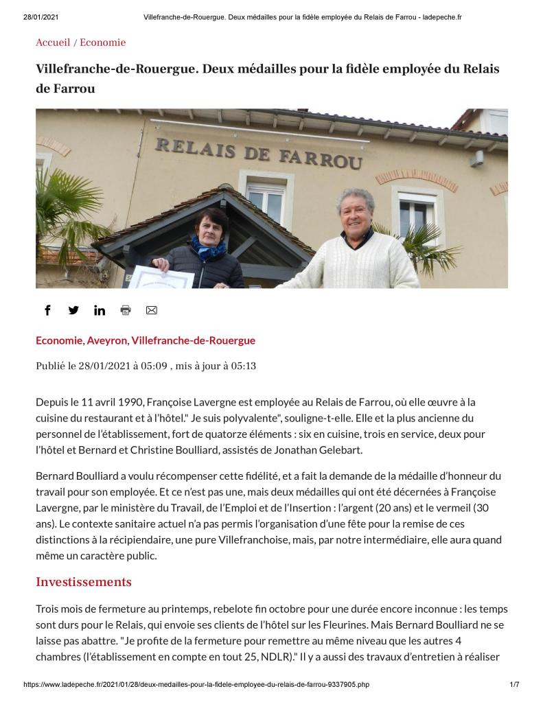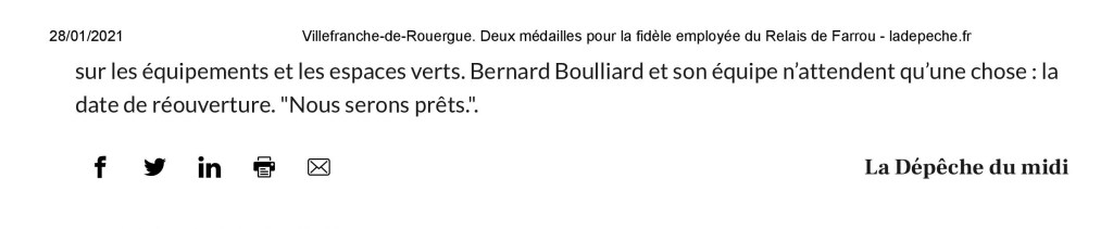 Article de La Dépêche du 18/06/2020 sur la réouverture du Relais de Farrou.