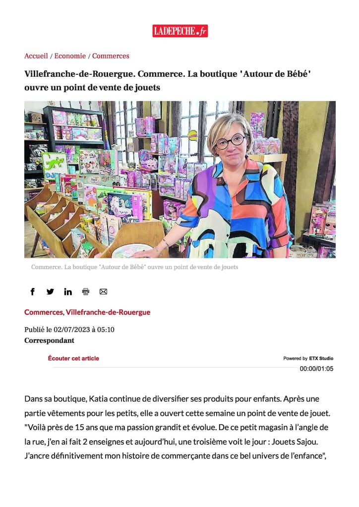 Article paru dans La Dépêche du 02/07/2023 sur l’ouverture de l’enseigne Sajou.