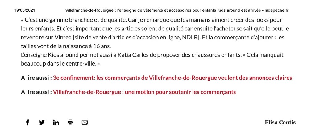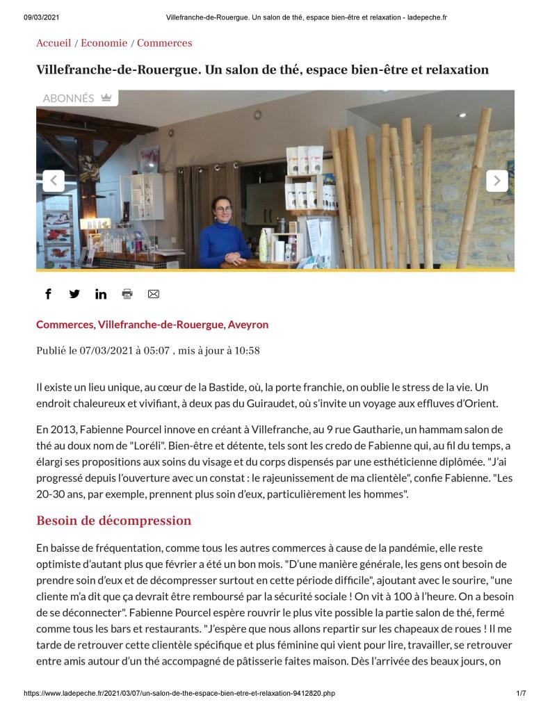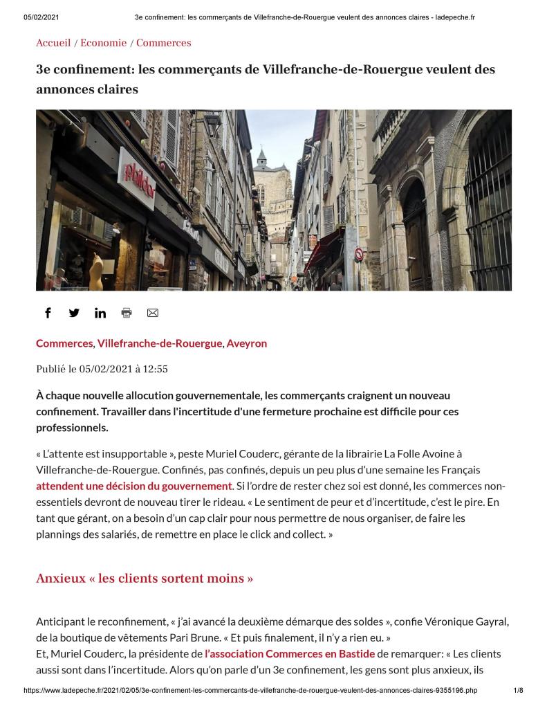 Article de La Dépêche du 02/04/2020 sur la mutualisation des compétences de 3 commerces de Villefranche de Rouergue, adhérents à Commerces en Bastide.