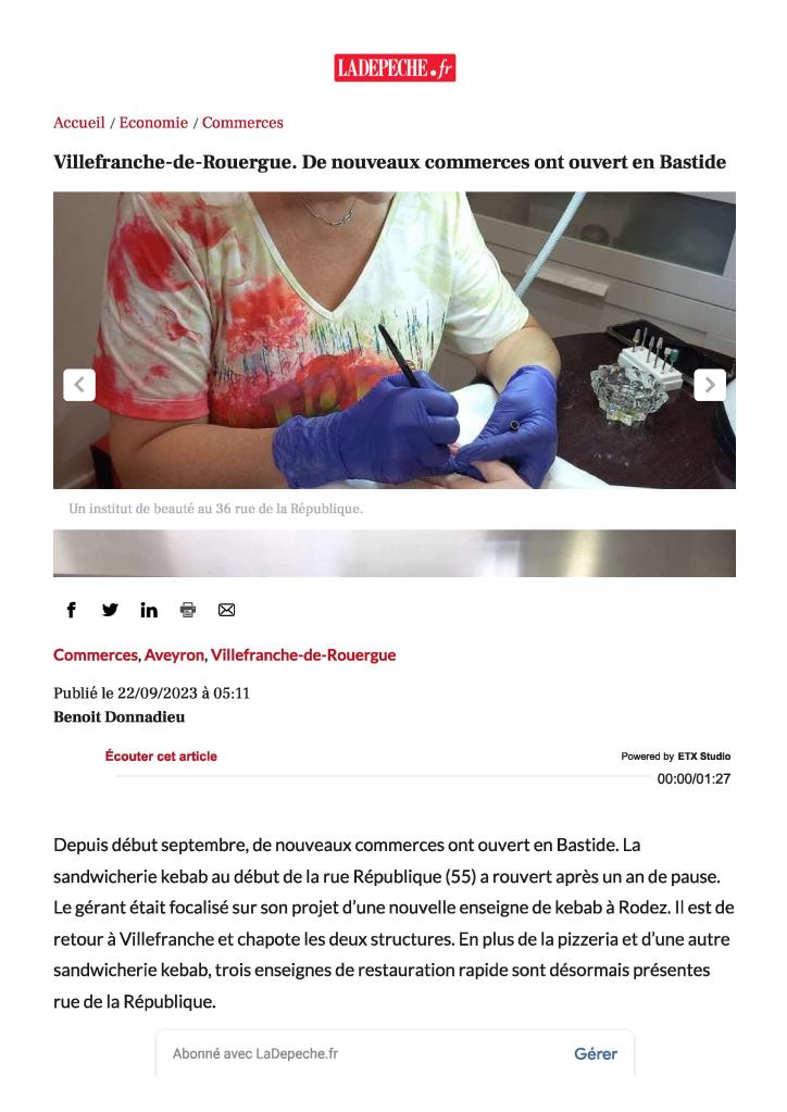Article paru dans La Dépêche du 25/09/2023 sur les nouveaux commerces en Bastide.