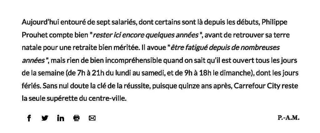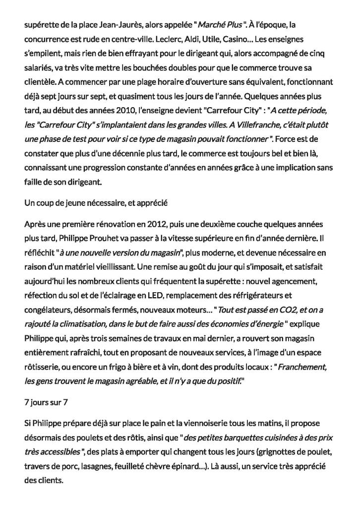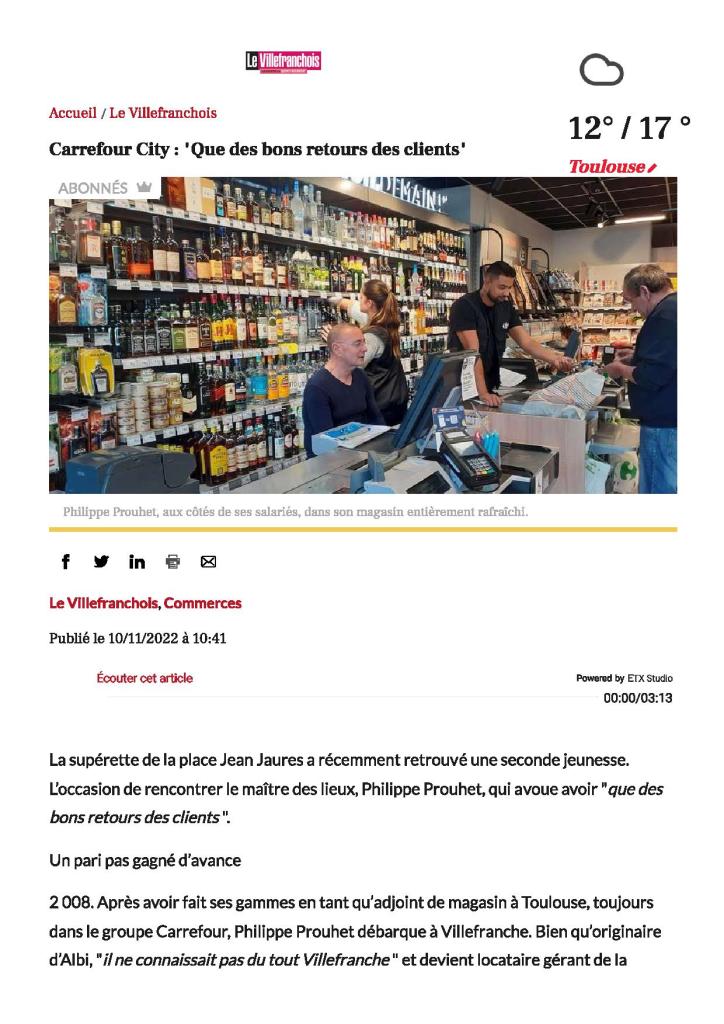 Article paru dans Le Villefranchois du 10/11/2022 sur les travaux de Carrefour City