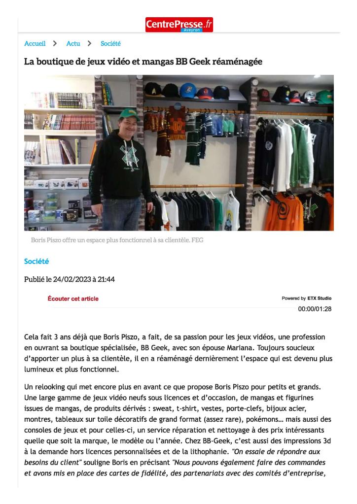 Article paru dans Centre Presse du 24/02/2023 sur BB Geek.