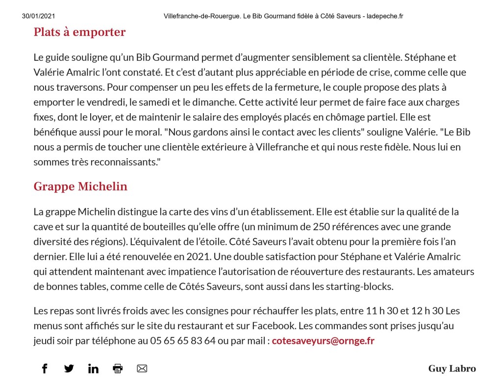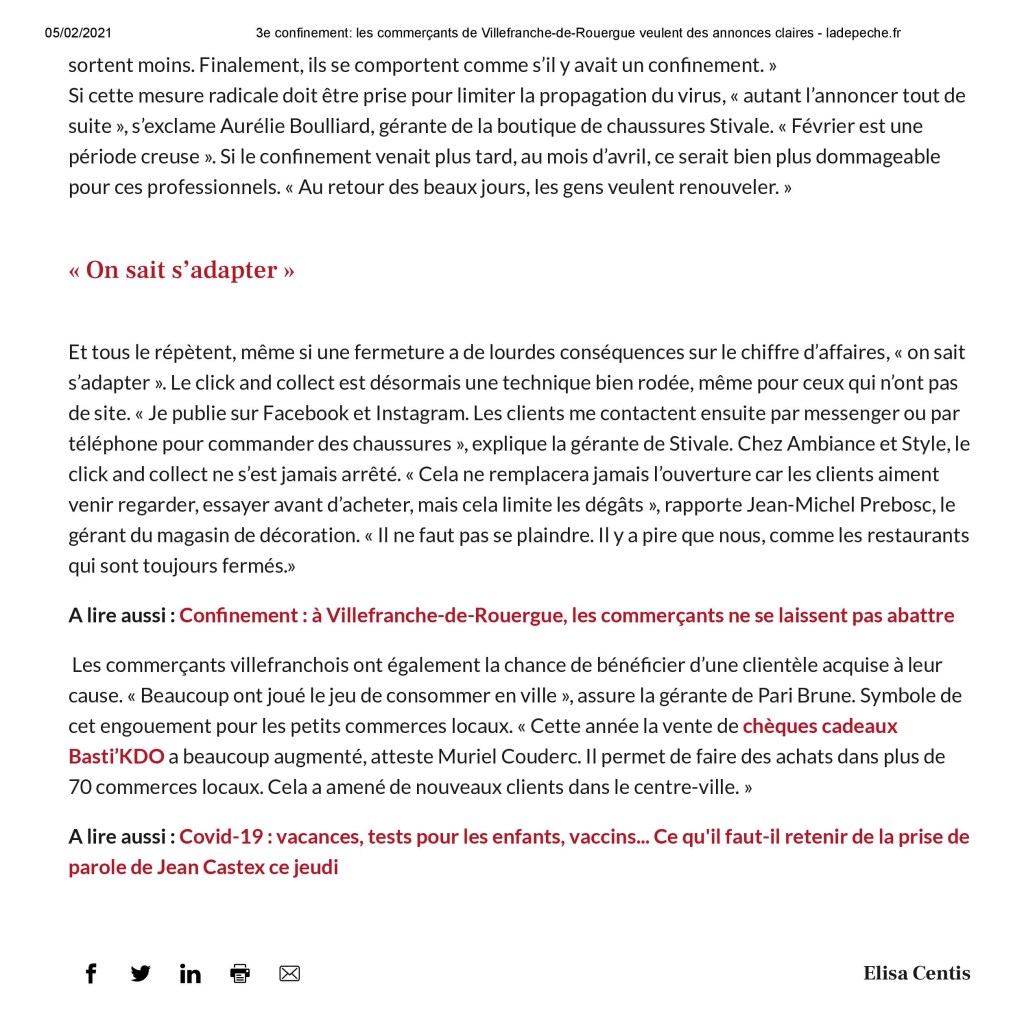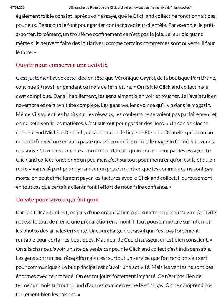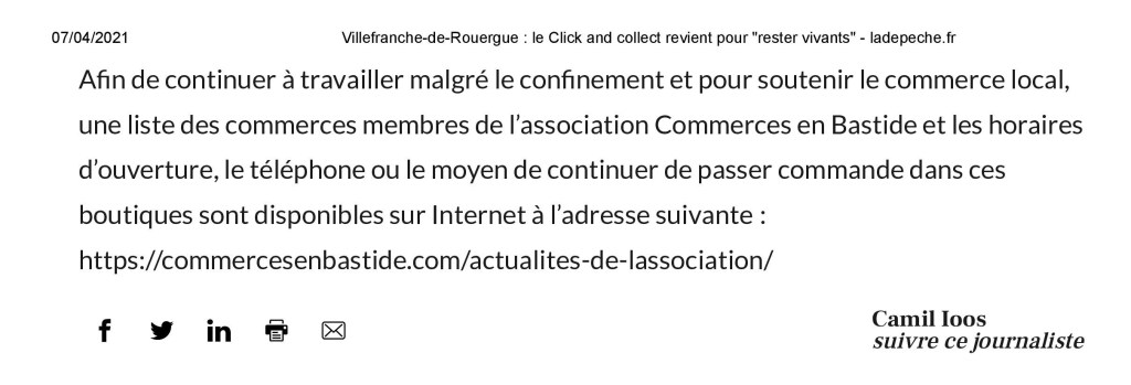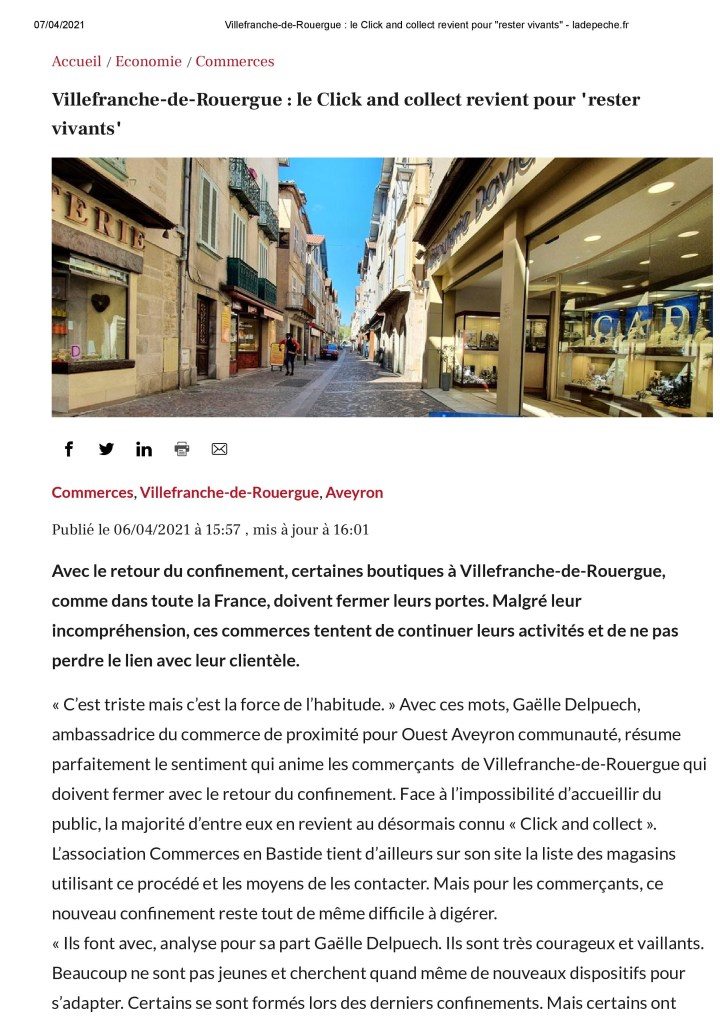 Article paru dans La Dépêche du 06/04/2021 sur la mise en place du Click & collect.