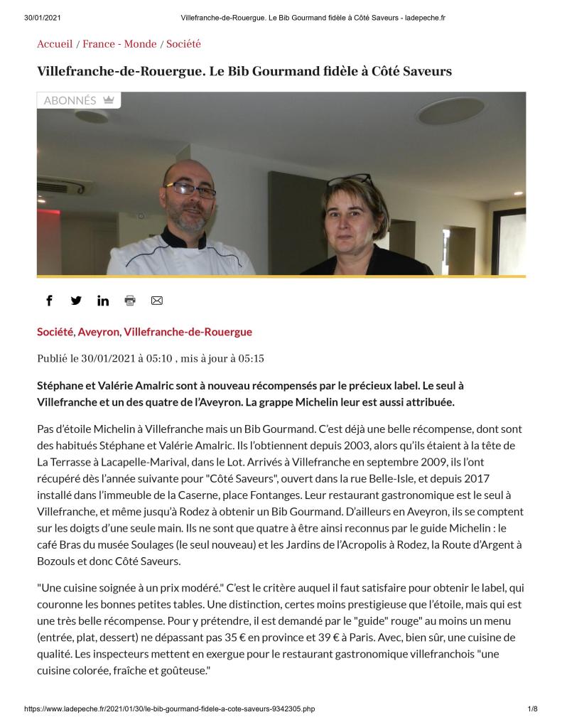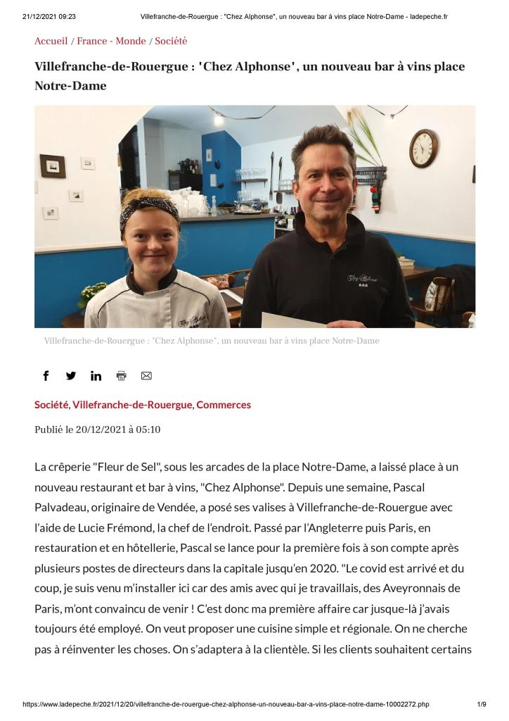 Article paru dans La Dépêche du 20/01/2021 sur notre futur adhérent – Chez Alphonse Bar à vins.