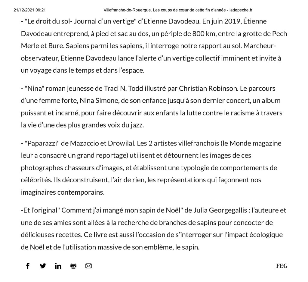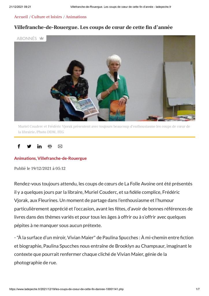 Article paru dans La Dépêche du 19/12/2021 sur les coups de cœur des fêtes de La Folle Avoine