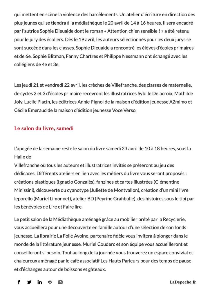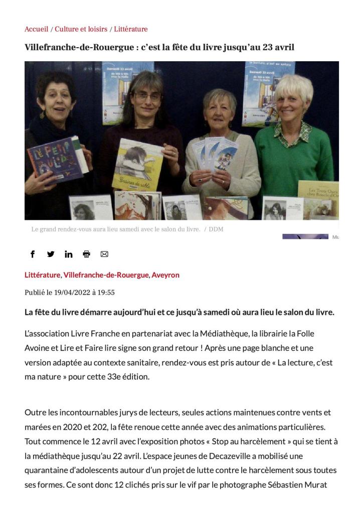 Article paru dans La DEPECHE DU 19/04/2022 concernant le Salon du livre dont La Folle Avoine est partenaire.