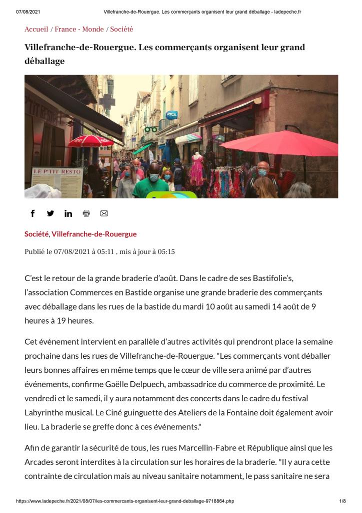 Article paru dans La Dépêche du 07/08/2021 sur la braderie des commerçants.
