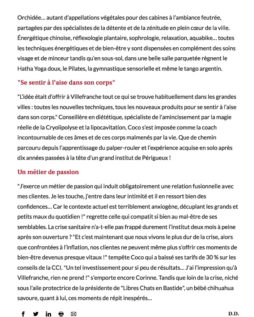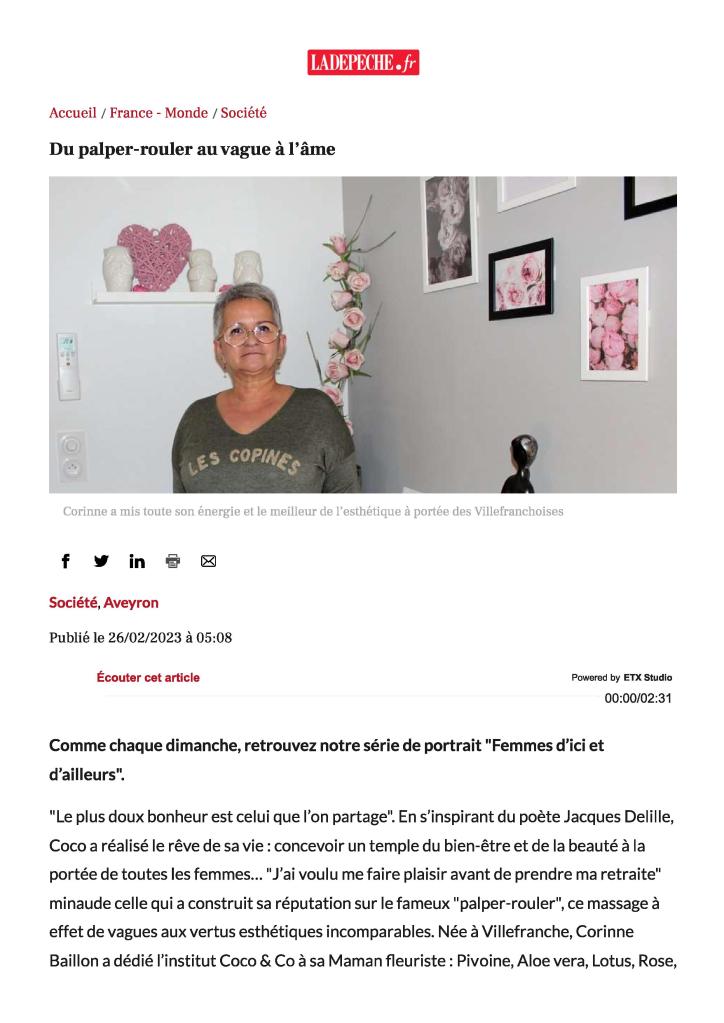 Article paru dans La Dépêche du 26/02/2023 sur l’institut Coco & Co