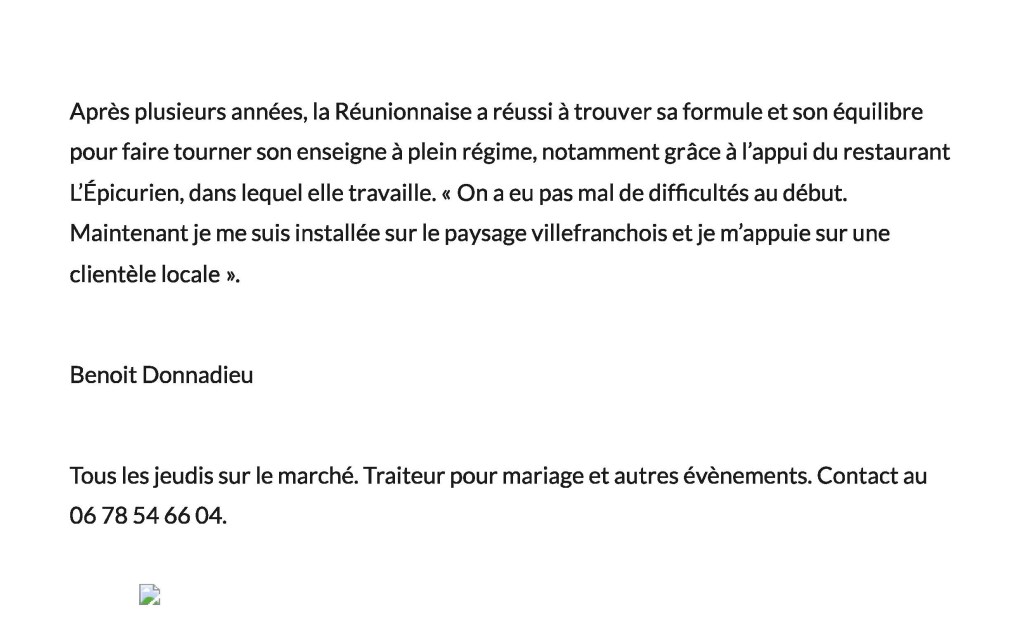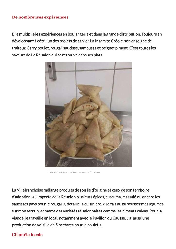 Article de La Dépêche du 14/10/2018 sur notre délicieuse partenaire ambulante La Marmite Créole