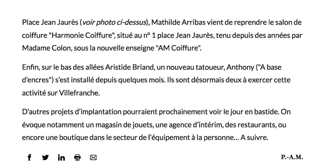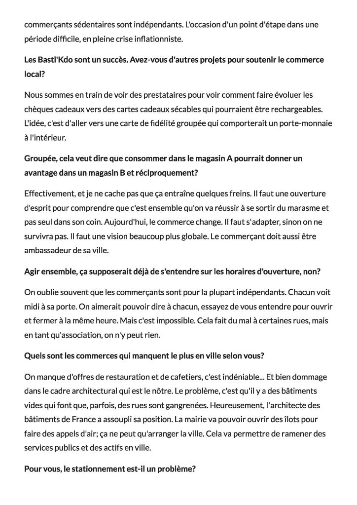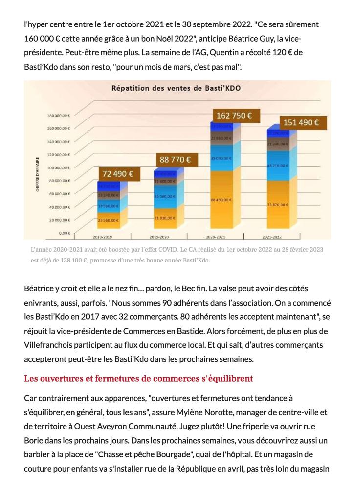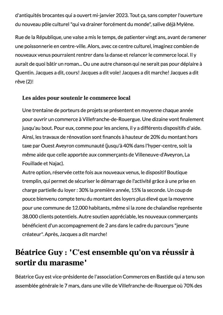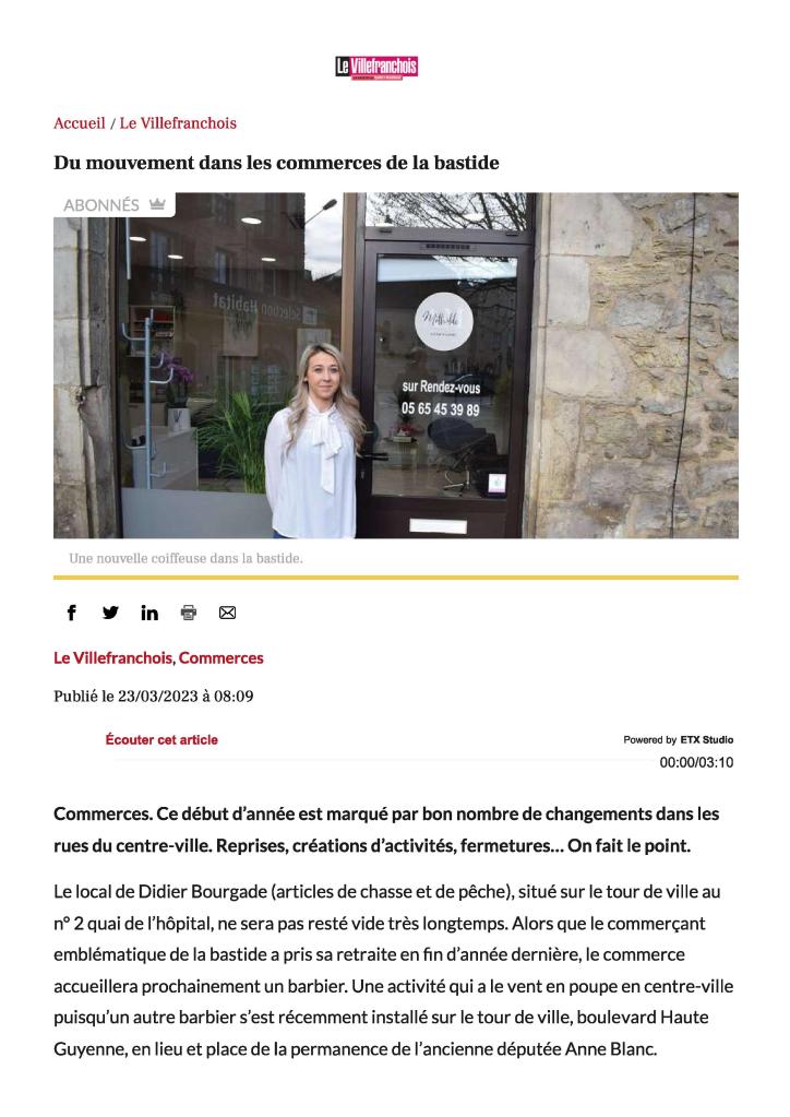 Article paru dans Le Villefranchois du 23/03/2023 sur les commerces en Bastide
