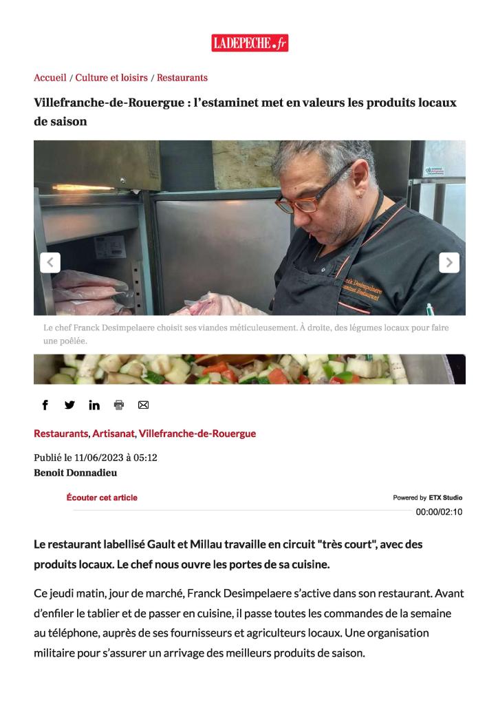 Article paru dans La Dépêche du 11/06/2023 sur L’Estaminet