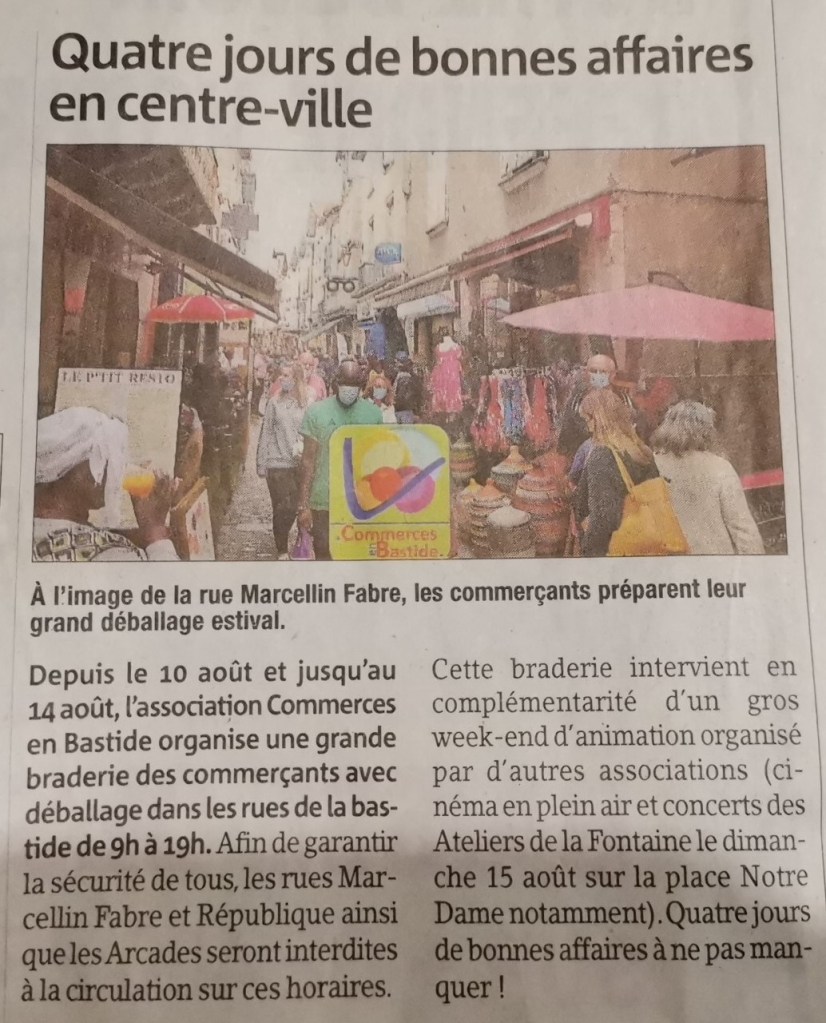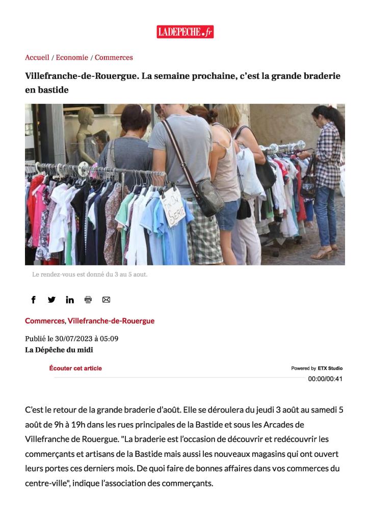 Article paru dans La Dépêche du 30/07/2023 sur la Braderie en Bastide.