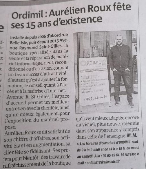 Article paru dans le Villefranchois du jeudi 09/12 sur les 15 ans d’Ordimil