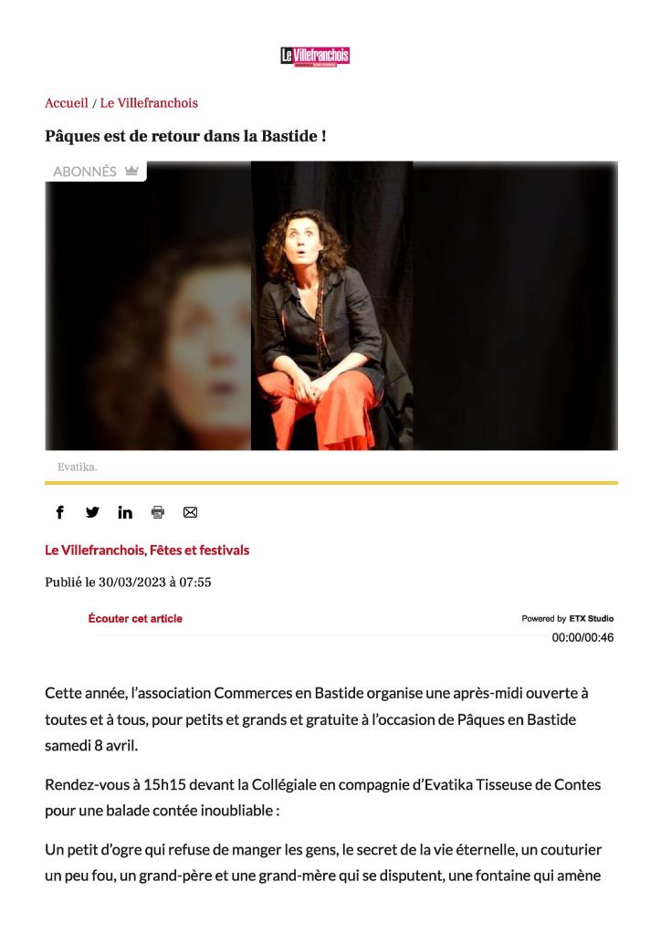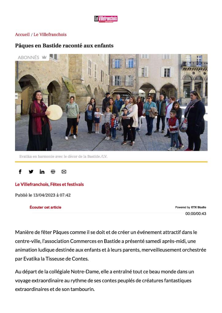 Article dans Le Villefranchois du 13/04/2023 sur Pâques en Bastide.