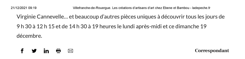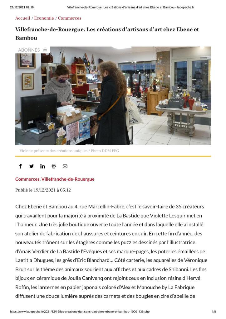 Article paru dans La Dépêche du 19/12/2021 sur Ebène et Bambous