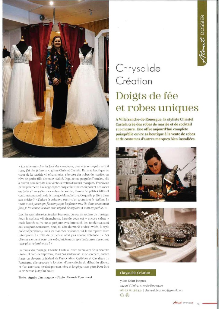 Reportage dans le magazine Atout Aveyron d’avril-mai 2023 sur Chrysalide Création.