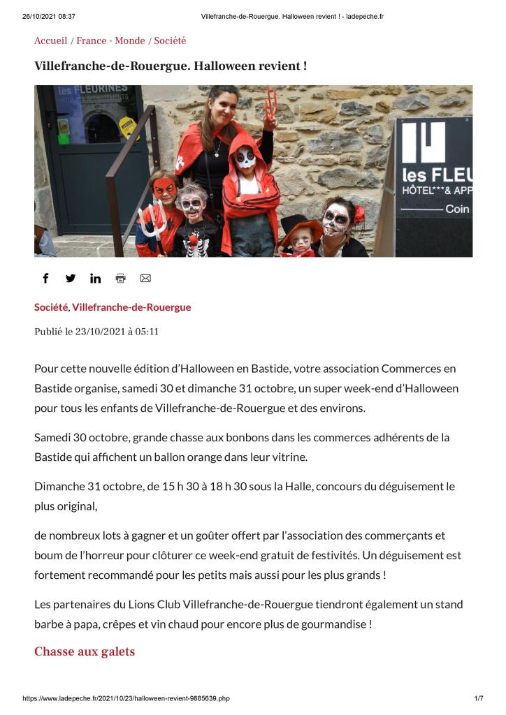 Article paru dans La Dépêche du 23/10/2021 sur Halloween en Bastide.