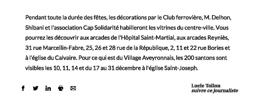 Article paru dans La Dépêche du 04/12/2022 sur les animations de Noël.