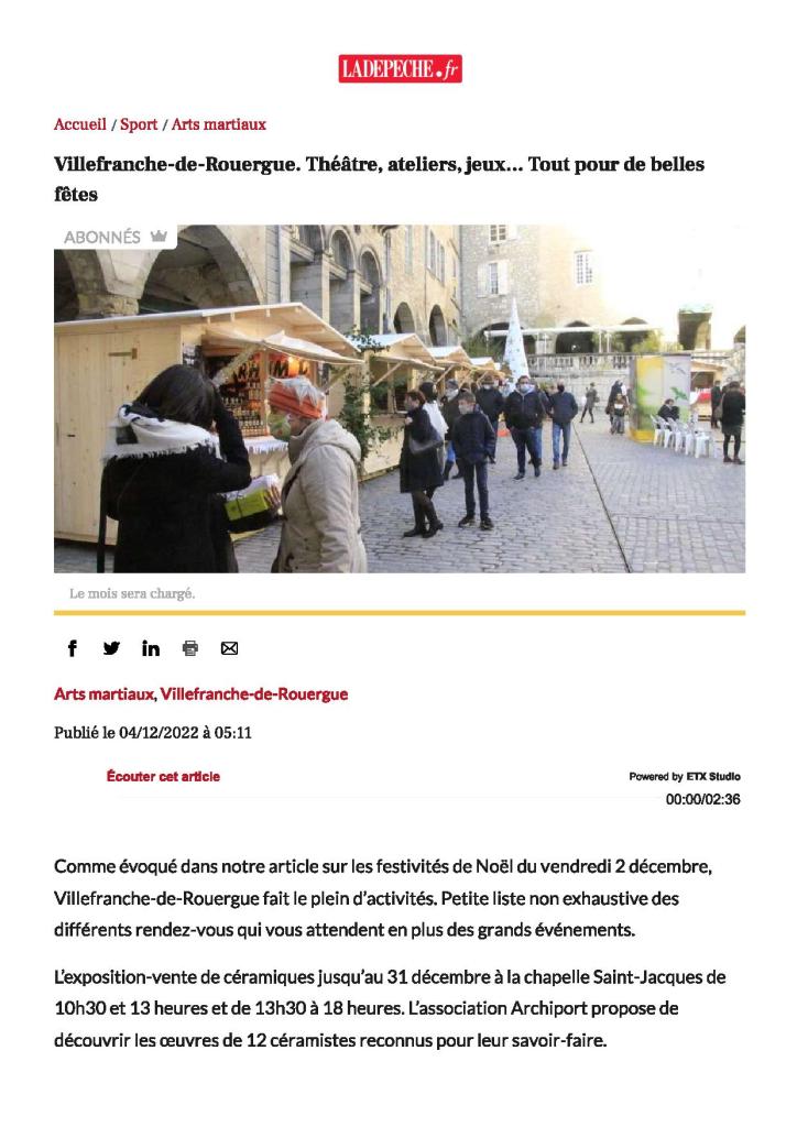 Article paru dans La Dépêche du 01/12/2022 sur les animations de Noël.