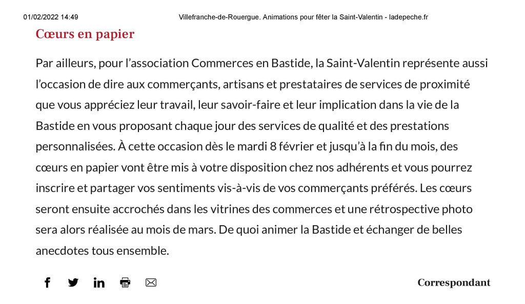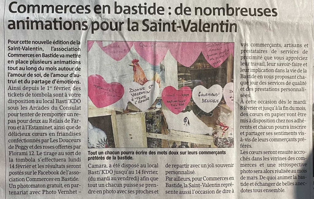 Article paru dans La Dépêche du 01/02/2022 sur les animations de la Saint-Valentin