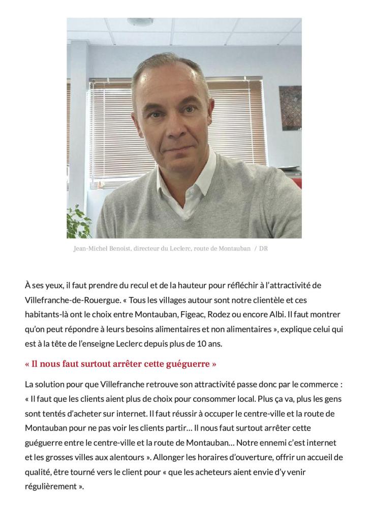 Article du Villefranchois du 22/11/2018 sur la bataille de l’association pour faire vivre le commerce en centre-ville ainsi que ses commerçants