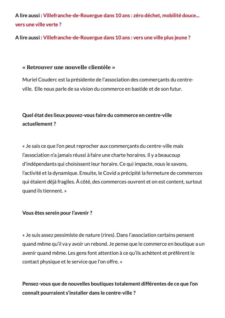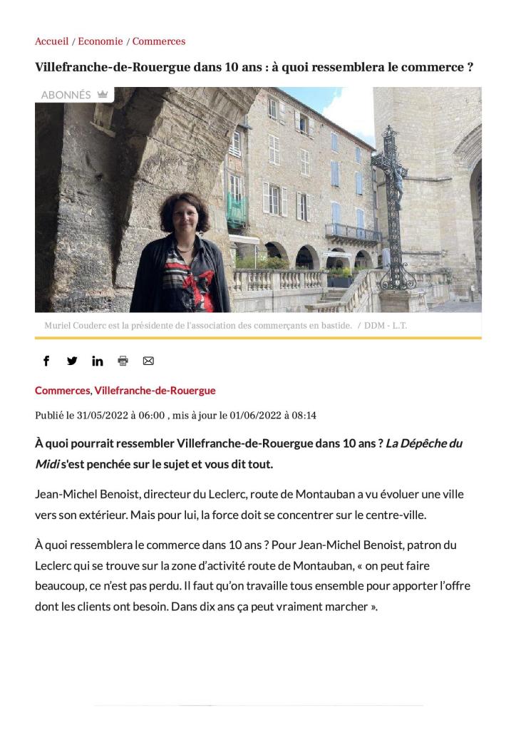 Article paru dans La Dépêche du 31/05/2022 concernant l’enquête sur « Villefranche-de-Rouergue dans 10 ans »