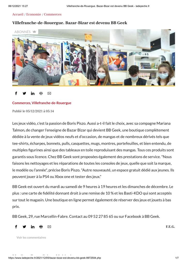 Article paru dans La Dépêche du 05/12 sur BB Geek