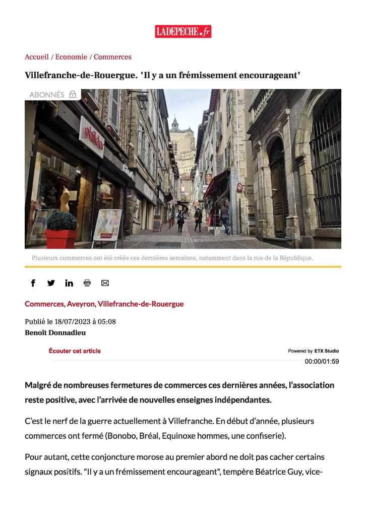 Article paru dans La Dépêche du 18/07/2023 sur la saison estivale dans les commerces