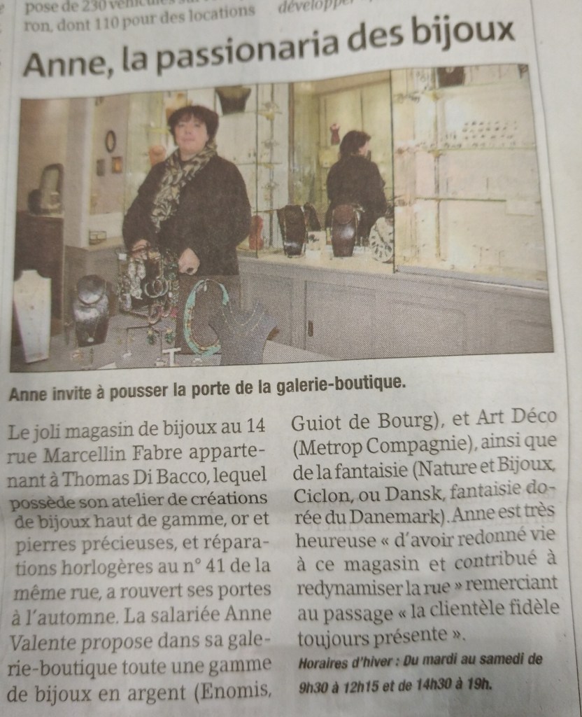 Article de La Dépêche du 07/01/2020 sur la reprise de Fleur de Dentelle, commerce adhérent, par une passionnée, Mme Delpech Michèle