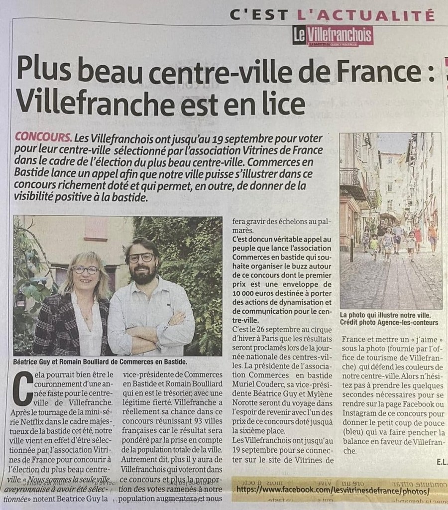 Article paru dans Le Villefranchois du 15/09/2022 sur la participation de CEB au grand concours national des Vitrines de France.