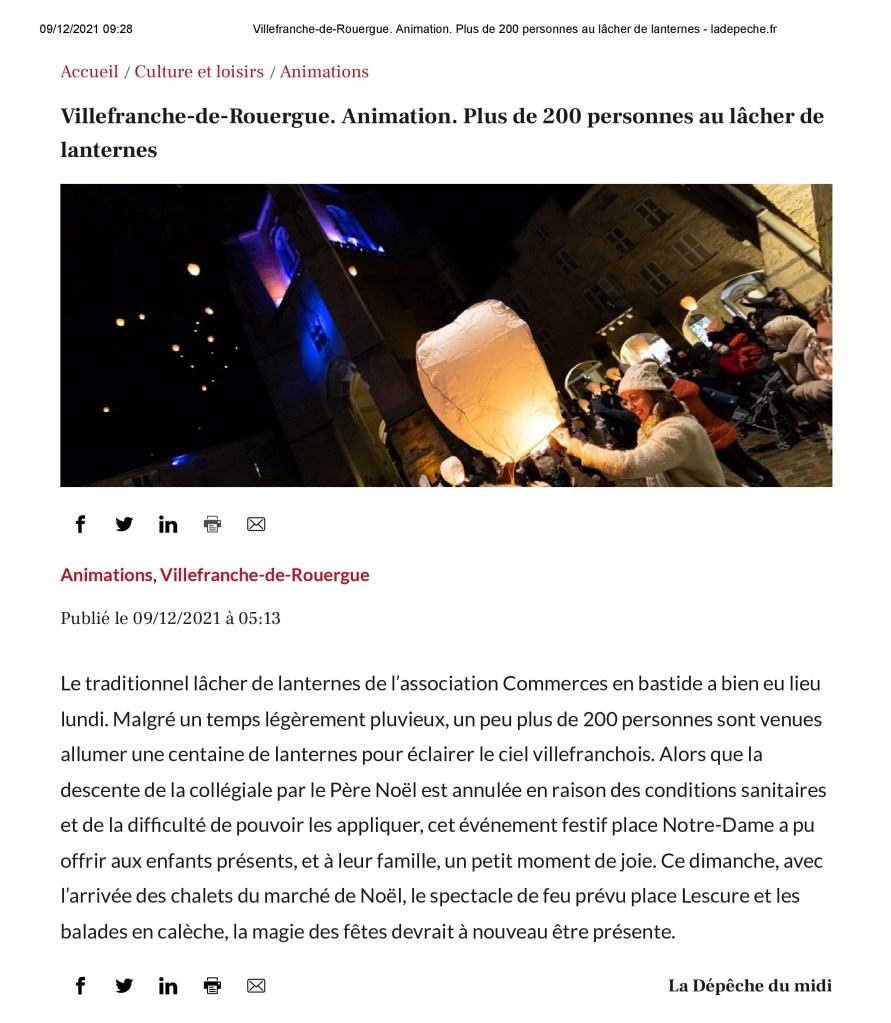 Article paru dans La Dépêche du 09/12 sur le lâcher de lanternes et la Saint-Nicolas