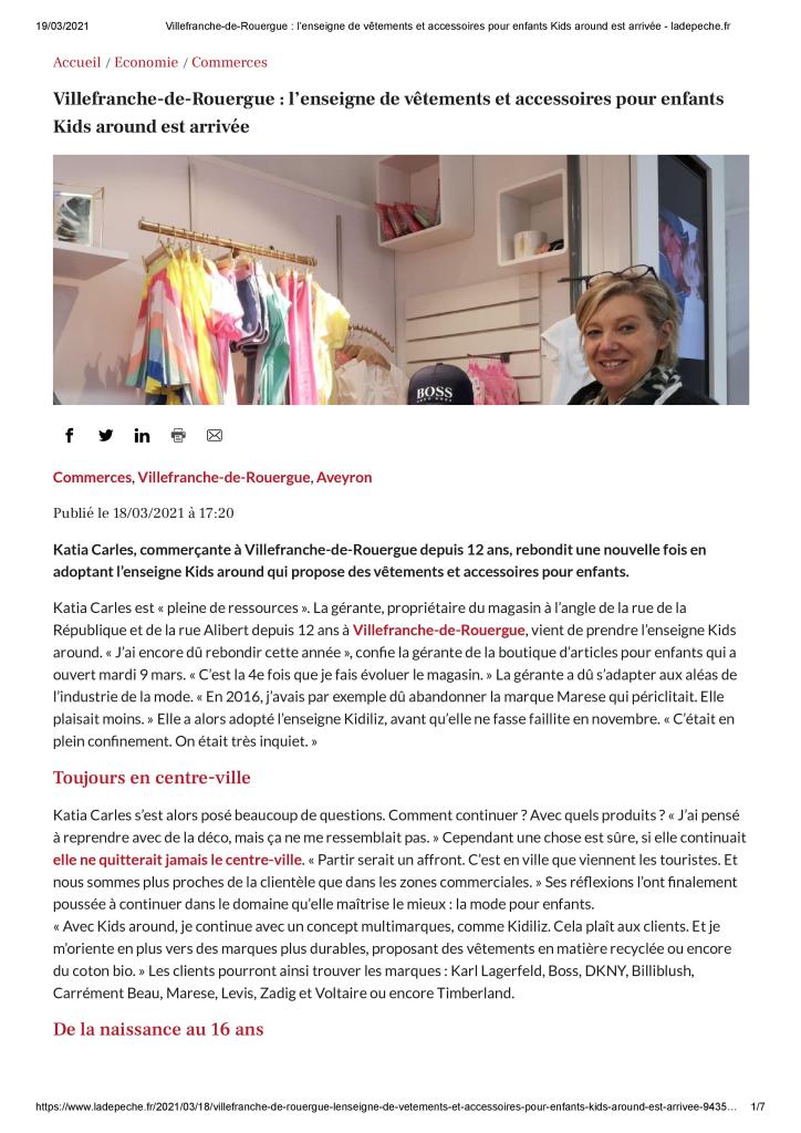 Article de La Dépêche du 10/07/2020 sur l’ouverture de la boutique KRAFT.